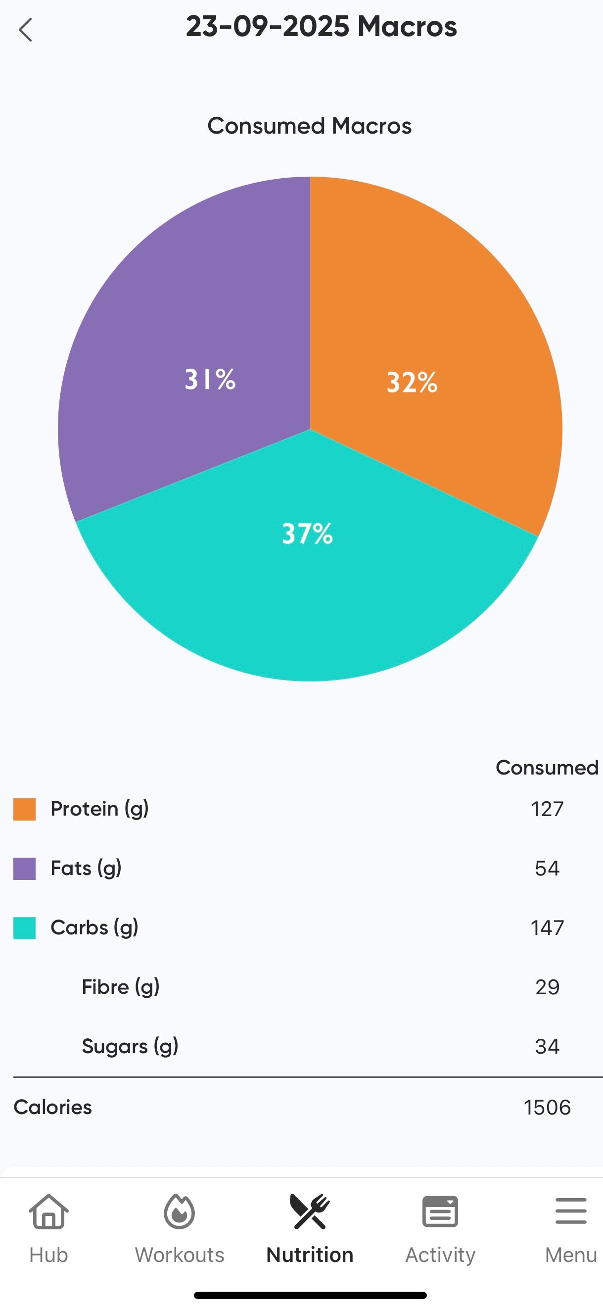 Shared nutrition tracking with Coach. Calculated caloric and macronutrient goals are designed to deliver results.